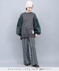 デニムパンツでカジュアルにまとめるのはもちろん、柄入りのニットパンツと合わせた柄×柄コーデもおすすめ。