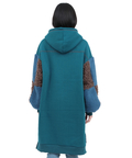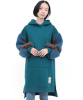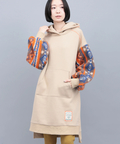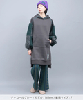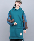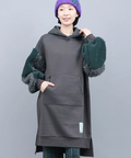 パーカーワンピースの袖をボア生地で切り替えた個性が光る1枚。