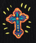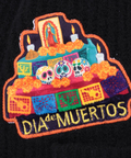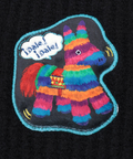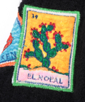 メキシコのハッピーなモチーフをぎゅっと詰め込んだ、カラフルなアップリケが映える、遊び心いっぱいの1枚。