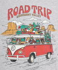 バックのチビカチナドールたちが車で旅をする道中のプリントは、かすれ加工を施したヴィンテージ風で程よいこなれ感を演出。