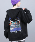 裏起毛で暖かい☆チビカチナドールの旅路を描いたジップパーカー