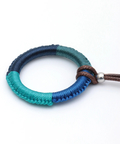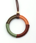 サークルのパーツに糸を巻き付けた、温かみのあるデザイン。