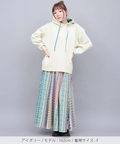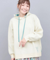 表裏で異なる配色が目を惹く、カラフルなニット素材のプルオーバーフーディー。