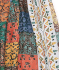 柄の中には、ブロックプリントやイカット、ミラーワークなど、多彩な表情のファブリックを楽しめるのも魅力◎