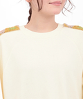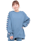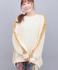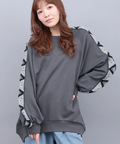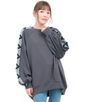 ベーシックなスウェットの袖部分にクロシェ風のラインが効いたゆるっと万能プルオーバー。
