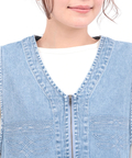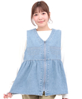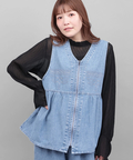 シーズンを問わず愛されるデニムで仕上げたペプラム仕様のジップアップベスト。