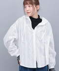 フード付きコットンレースシャツ