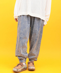 ケミカルウォッシュ風の風合いがアメカジや古着テイストと相性抜群で、シンプルなトップスと合わせるだけでもこなれたコーデが完成します。