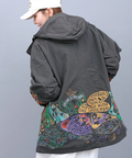 裾から腰にかけて個性溢れるカラフルな刺繍を施した ゴースローキャラバン的「ヒッピー!」スタイルを象徴するフィールドコート。