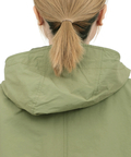 幅広の袖や頭を包み込む大きめのフードなど、オーバーコートの用途を備えるゆとりのあるシルエット。