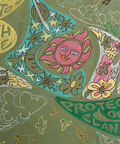 グルーヴィなヒッピーロゴを刺繍で描いたフィールドコート