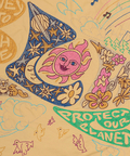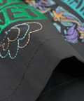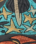 「自由と平和、愛、波打つようなリズム」を表現した〝グルーヴィ〟なヒッピーロゴを刺繍で表現しました。