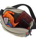 メイン収納は2層構造で、どちらもマチ付きだからポーチや500mlのペットボトルもすっぽり。