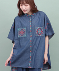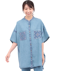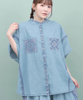 Rico ライトデニムメヒコタイル刺繍シャツ