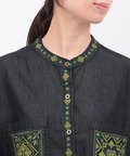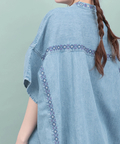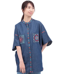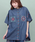 贅沢に刺繍をあしらった大人なデニムドルマンシャツ