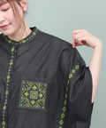 メキシコタイルをモチーフにしたオリジナル柄を、贅沢な刺繍で表現したデニムシャツ。