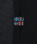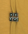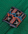 さりげなくあしらったエスニックテープが、コーデのアクセントに。