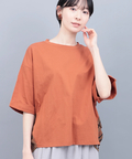 フロントがシンプルなので、柄ボトムスと合わせても程よくまとまり、こなれ感のある着こなしに。