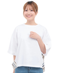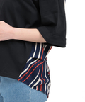 無地×イカット風柄×ストライプが映える、異素材コンビトップス
