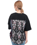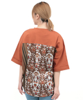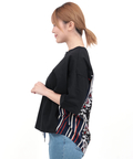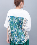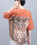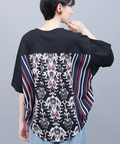 背中に大胆なエスニック柄をあしらった、存在感たっぷりの異素材コンビトップス。