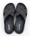 さっと履けて華やか!キラキラ輝くクロスサンダル。