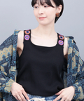 肩紐にカラフルなクロシェテープをあしらった、コーデのアクセントになるインナータンクトップ。