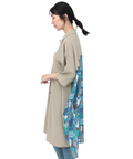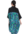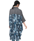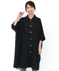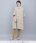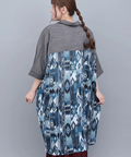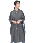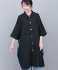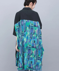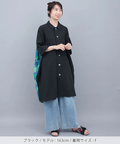 ゆったりとしたシャツワンピースに、イカット柄の切り替えをプラスしたドッキングデザイン。