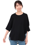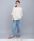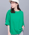 フロントはシンプルな無地カットソーで、着回しやすさも抜群。