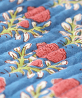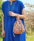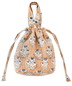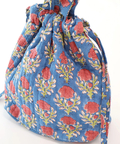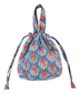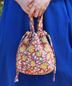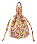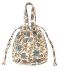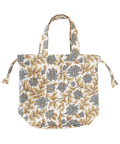 心癒される優しい花柄がフェミニンな印象のブロックプリントの保冷巾着バッグ。