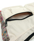 外側にはファスナー付きの立体ポケットを2つ配置し、収納力も抜群。