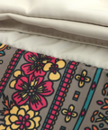 ベージュ:メキシコのお花やサボテンを描いたボーダー柄