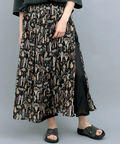 エジプトモチーフの柄が目を惹く、ふんわり涼しげなパンツスカート。