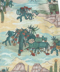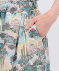 アースカラーでまとめた、落ち着きのあるサボテン柄は山や自然の風景を一緒に描いたデザインで、どこかノスタルジックな雰囲気が魅力です。