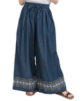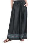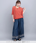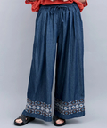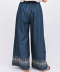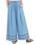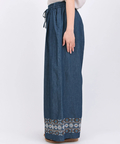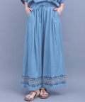 裾に入った刺繍が大人可愛い♪デニムワイドパンツ