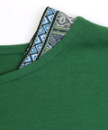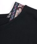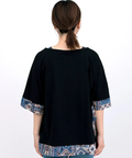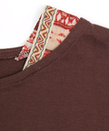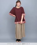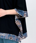 裾と首元に施されたエスニック柄は、落ち着いたカラーリングで着回し力をUP!