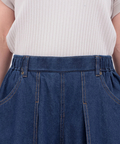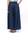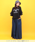 フロントに入れた深めのタックがポイントのデニムワイドパンツ。