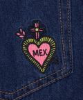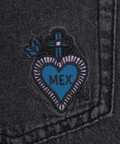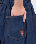 後ろポケットにはコラソンの刺繍を施し、さりげないワンポイントに。