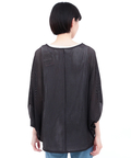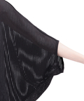ゆったりとしたドルマンスリーブのメッシュトップスは、涼しげな透け感がポイント。