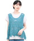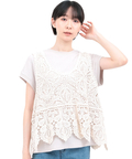 ナチュラルな風合いのコットン糸のかぎ針編み風のベスト。