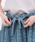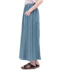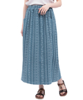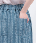 幾何学模様をジャカードで表現した、総柄デニムスカート。