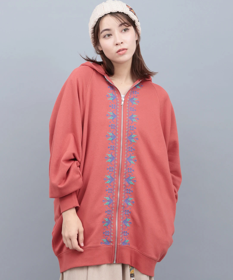 トウモロコシ畑をイメージしたミルパ刺繍がアクセントのパーカー。ぽってりとしたシルエットが優しい印象をプラスし、季節の変わり目の軽アウターとしても活躍します。