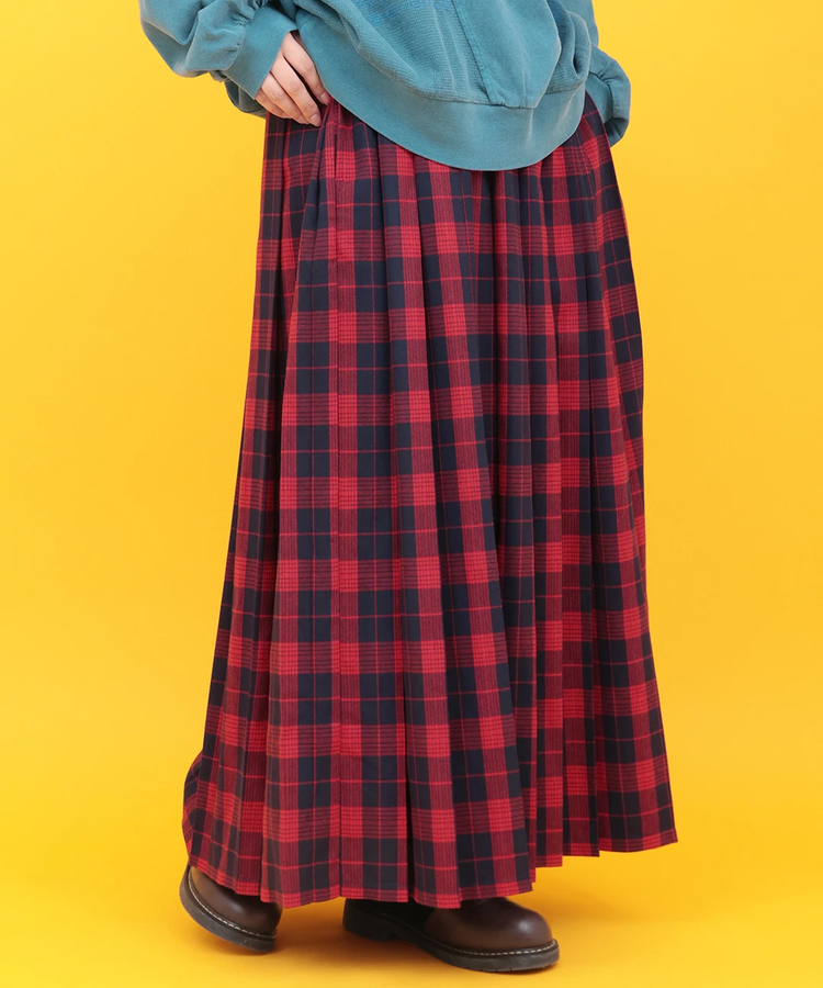 カラフルなチェック柄が印象的なロングプリーツスカート。古着っぽい雰囲気やカジュアルスタイルにも取り入れやすく、一枚でこなれ感のある着こなしが完成します。
