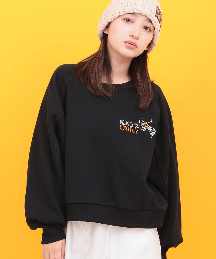 トレンド感のある短丈シルエットの裏起毛スウェット。ベーシックなボディカラーに、カラフルな刺繍が映えるデザインです。