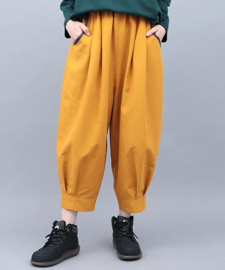 タックで腰回りゆったり、丸みがかわいい人気のエッグタックパンツ。今シーズンから生地をリニューアルし、微起毛のなめらかな肌触りと立体感のあるシルエットをより美しく表現。