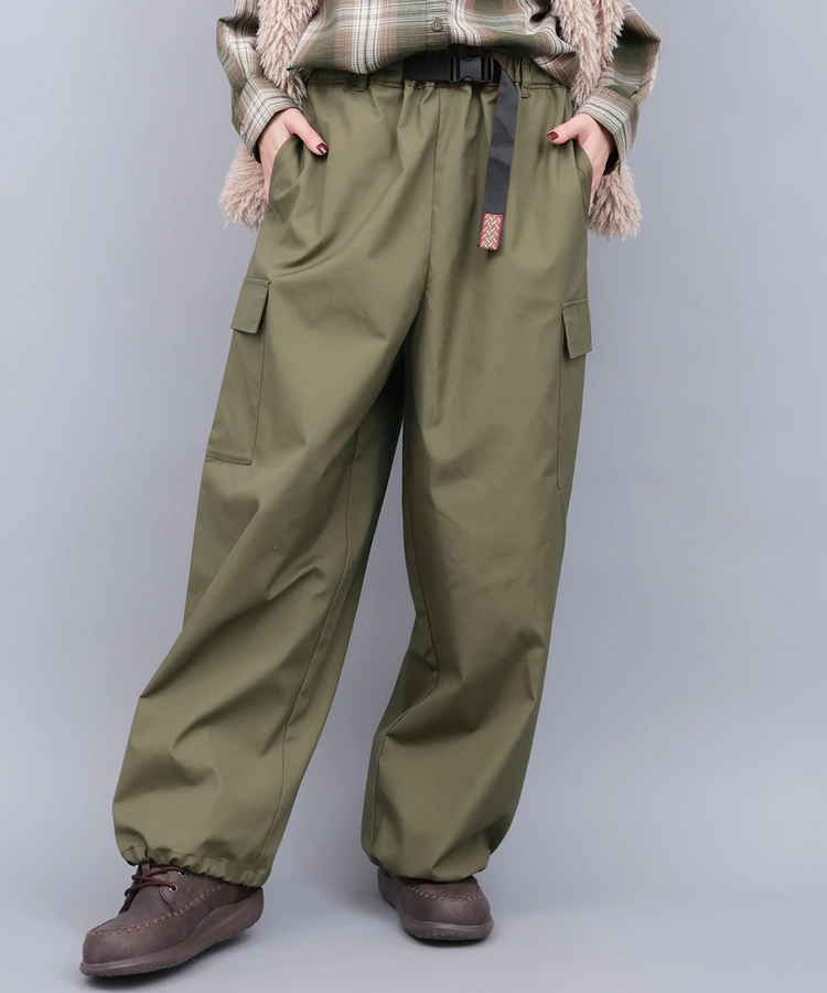着回し力抜群の、使い勝手の良い定番カーゴパンツ。ウエストはガチャベルト付きで、アウトドアな雰囲気をプラスしています。ハリのあるポリエステルコットン素材で、程よい厚みがあり、シーズンレスで着用していただけます。