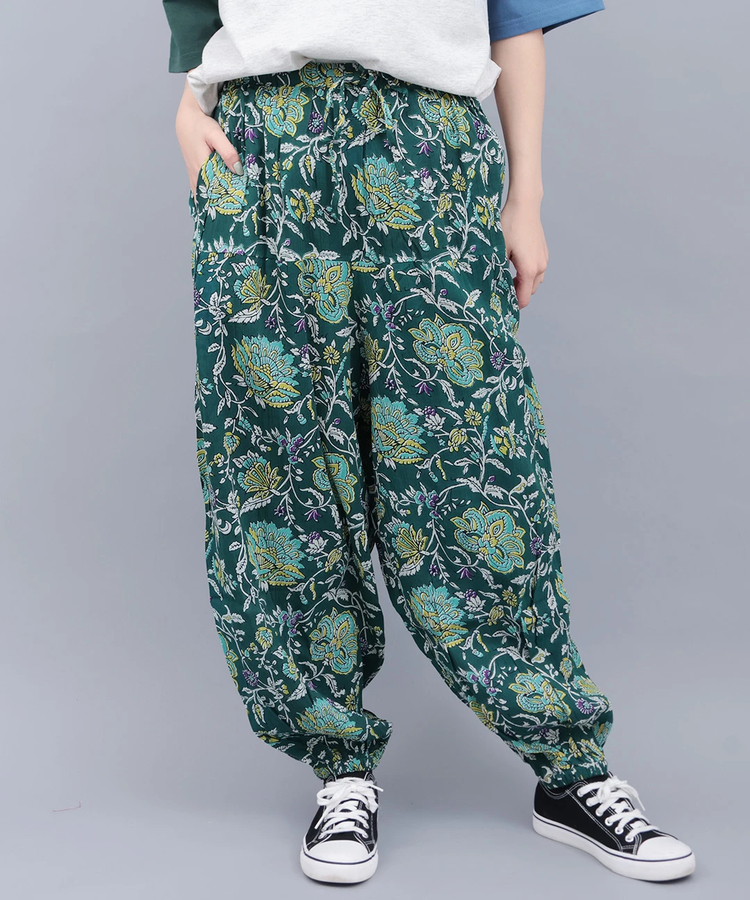 エスニック感たっぷりな総柄パンツ。ゆったりとしたルーズなバルーンシルエットと、とろんとした薄手の素材感で一度穿いたら手放せなくなること間違いなし!
