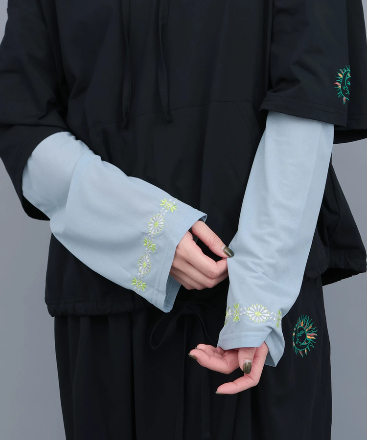 ネイティブアメリカンジュエリーをイメージしたオリジナル刺繍を、贅沢に施したアームカバー。袖口はフレア仕様で、レイヤード風の着こなしを楽しめます。
