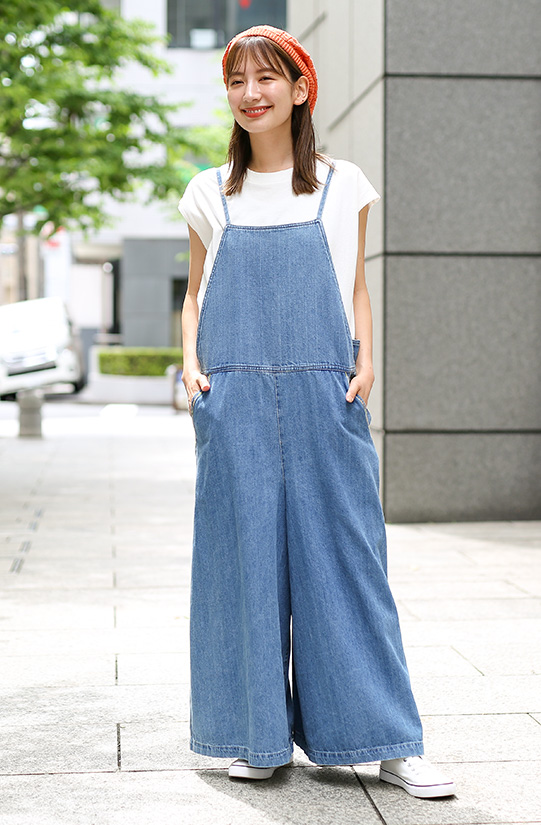 夏のサロペットスタイルは白Tをイン!