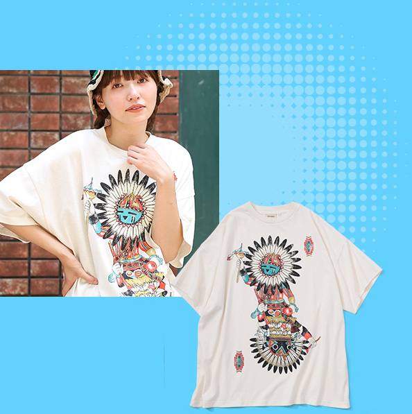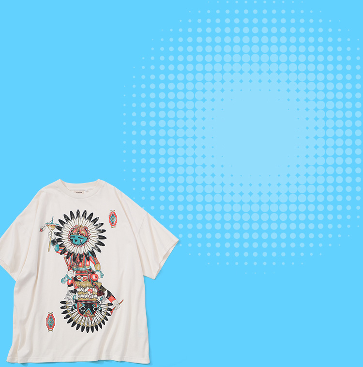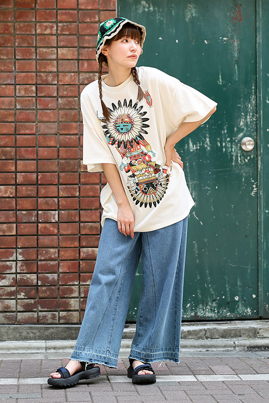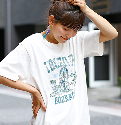 やっぱりデニムとの相性は抜群。シンプルなコーデなので、自分らしさを出したい時は、インパクトのあるビッグプリントTがオススメ。