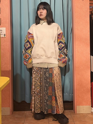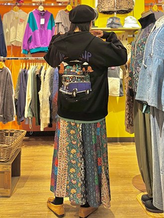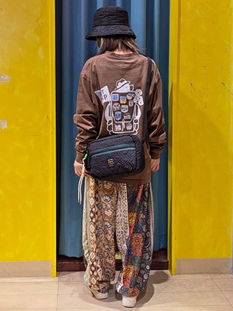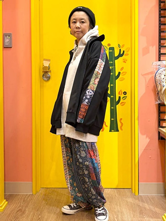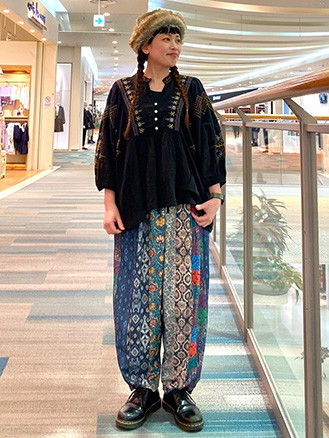 ファブリックプリント&ブラックパンツ